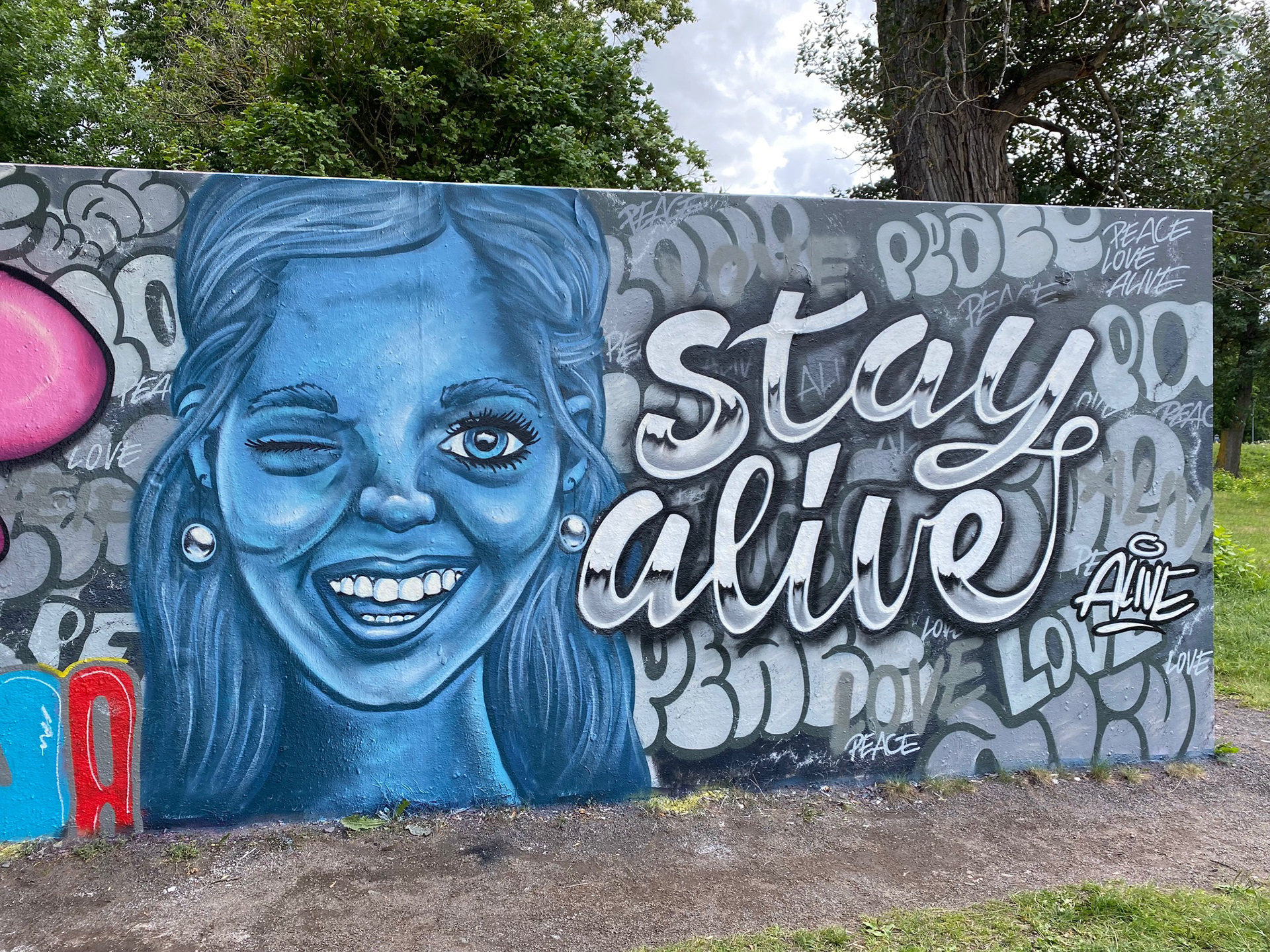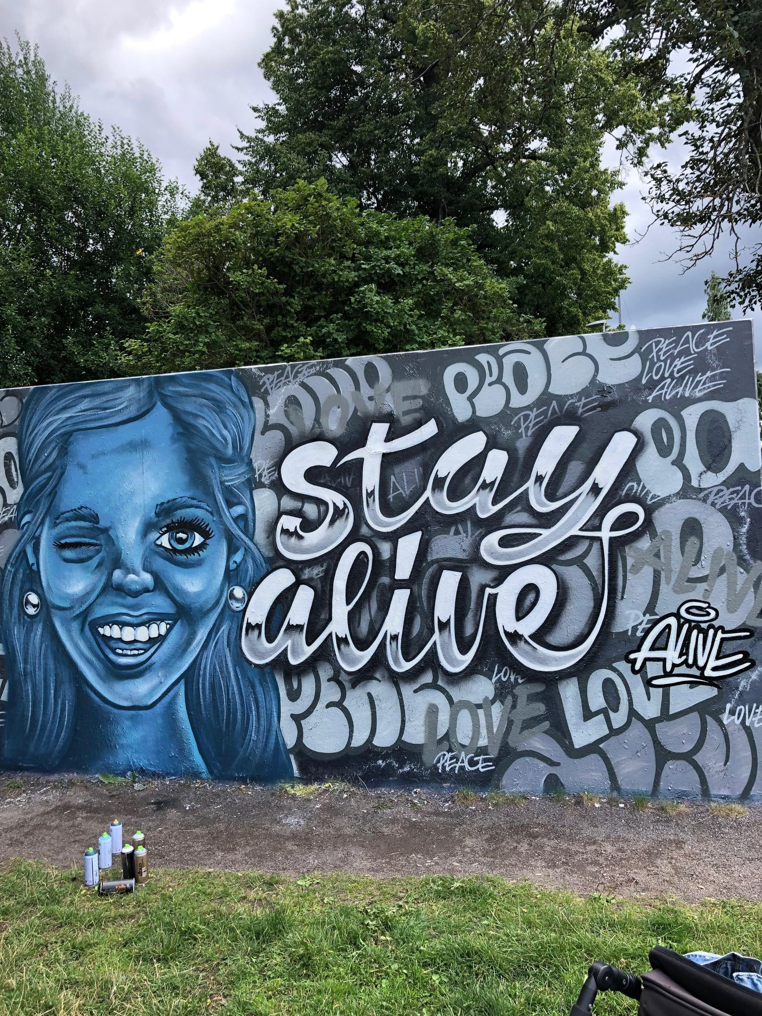 Stay Alive, graffiti målning vid Vätterstranden i Jönköping.