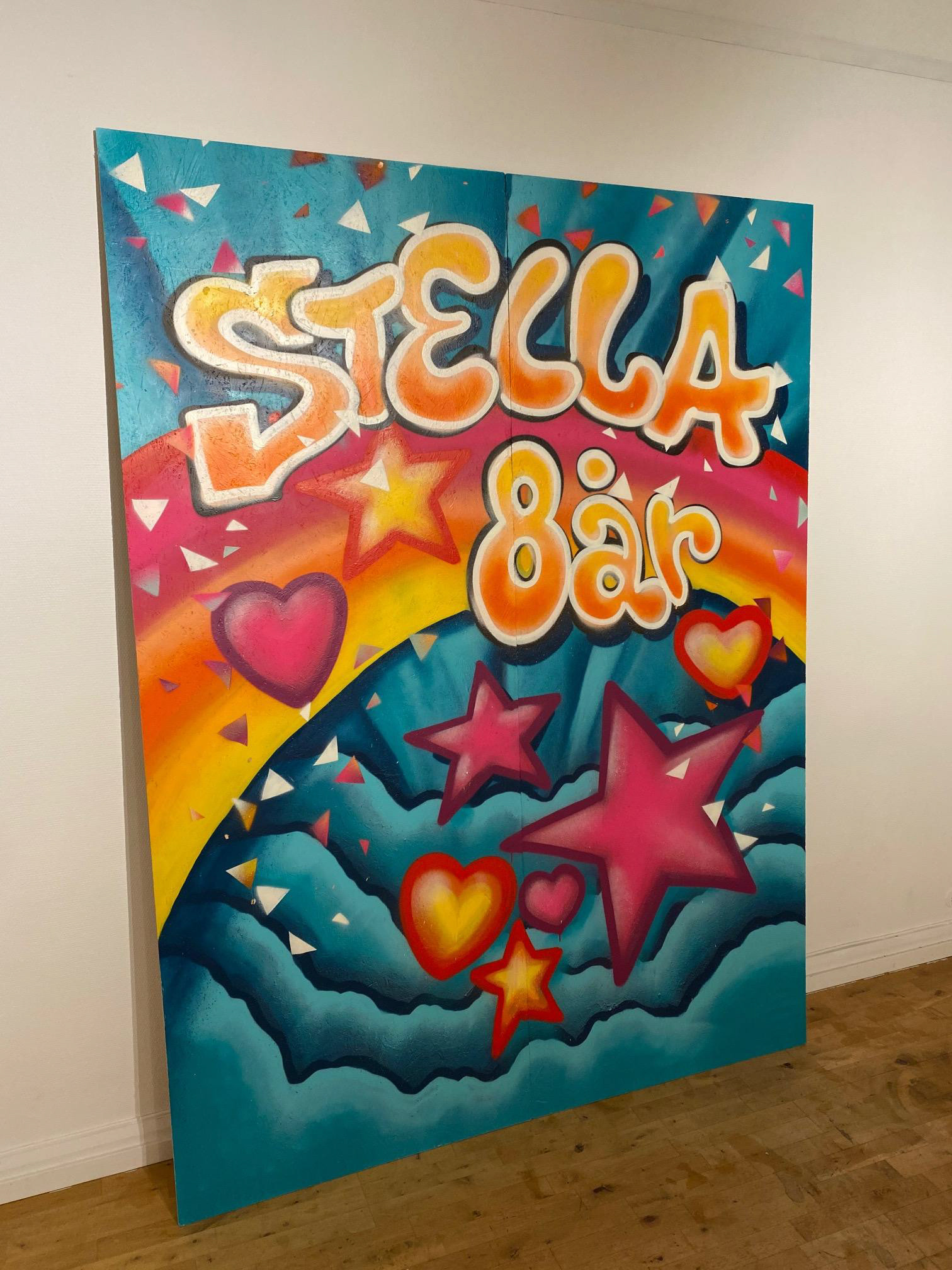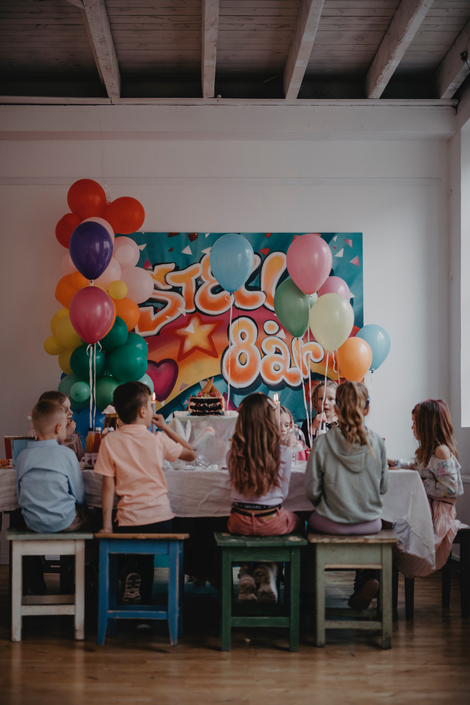 Fondvägg till världens finaste barnkalas. Foto/Bild av Sofia Noor Studio, Tårta från Lilla Bageriet i Vaggeryd, Äppelmust från Bergströms lilla musteri i Bankeryd.