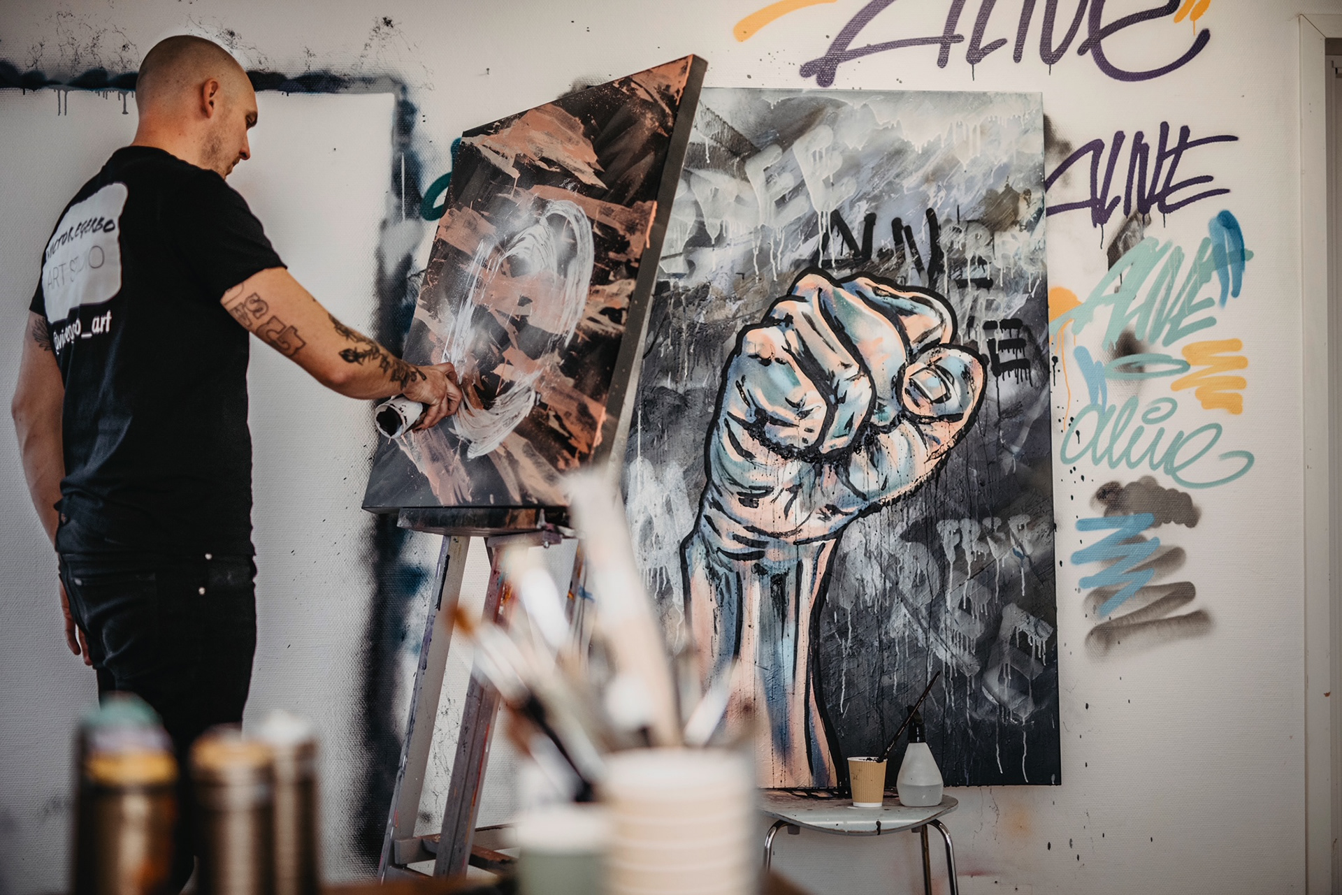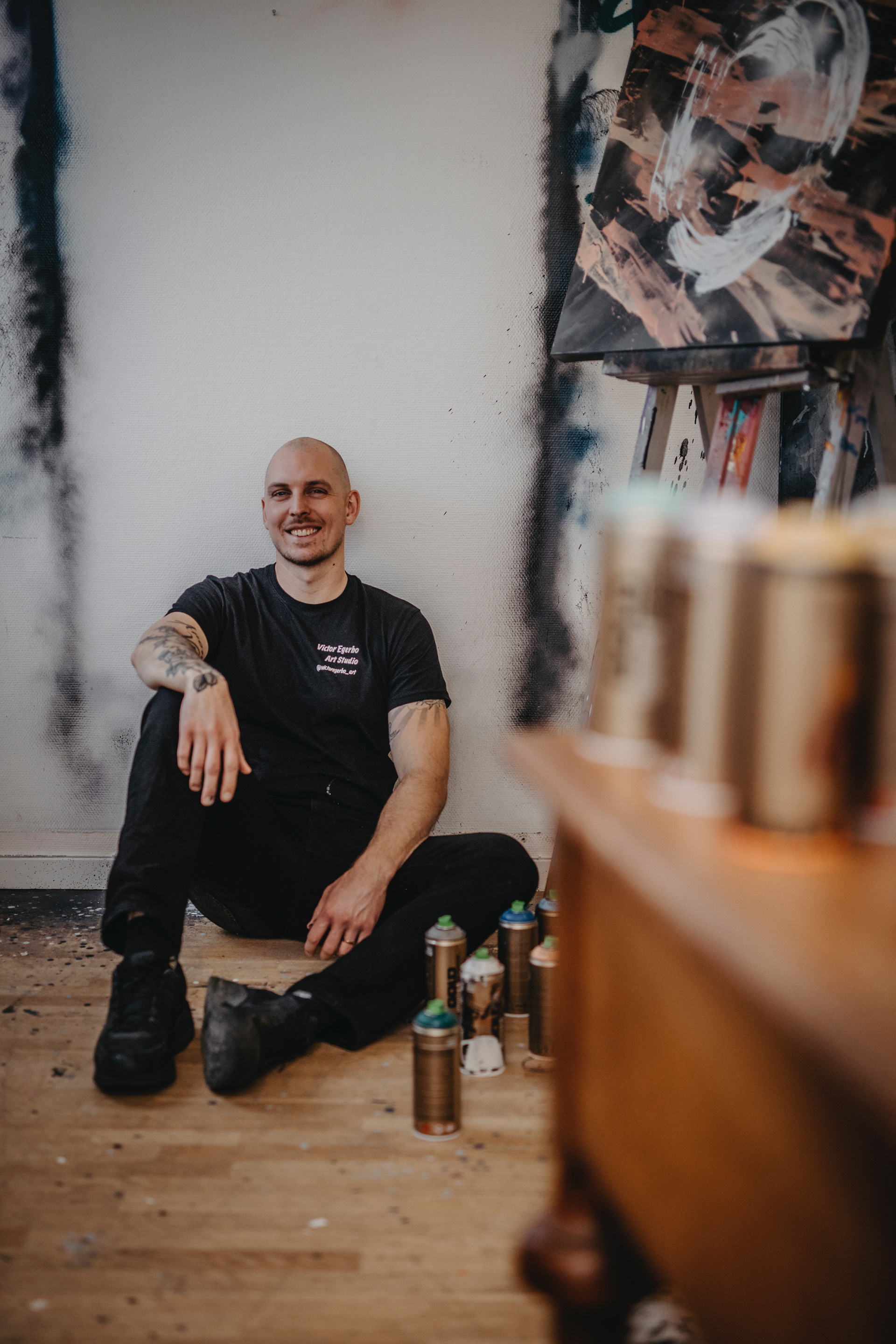 Frihet: tavla målad med sprayfärg och akryl. Storleken är 150 x 100 cm och tavlan är av typen deep-edge canvas.