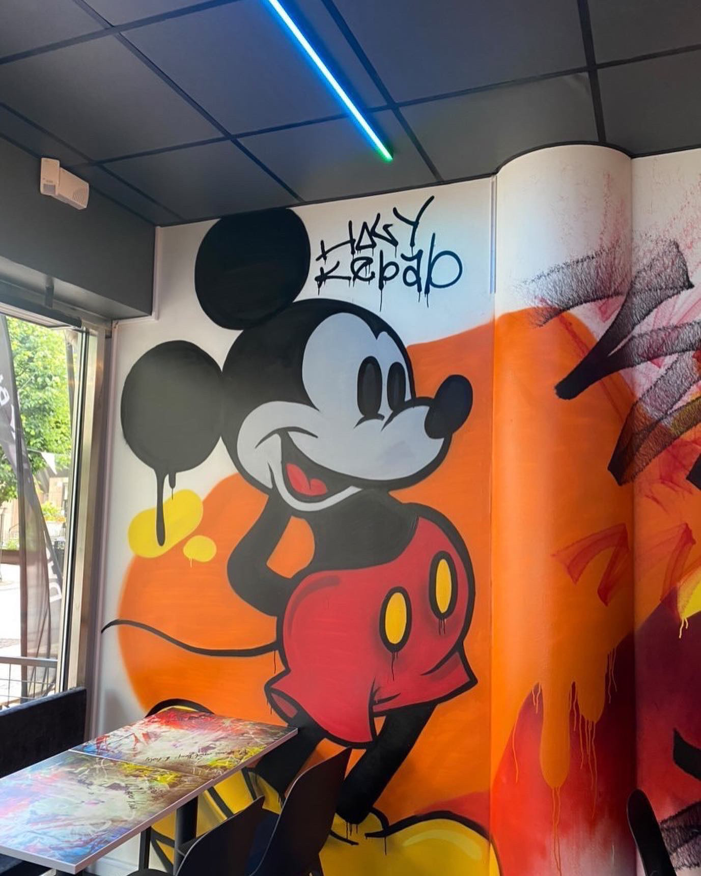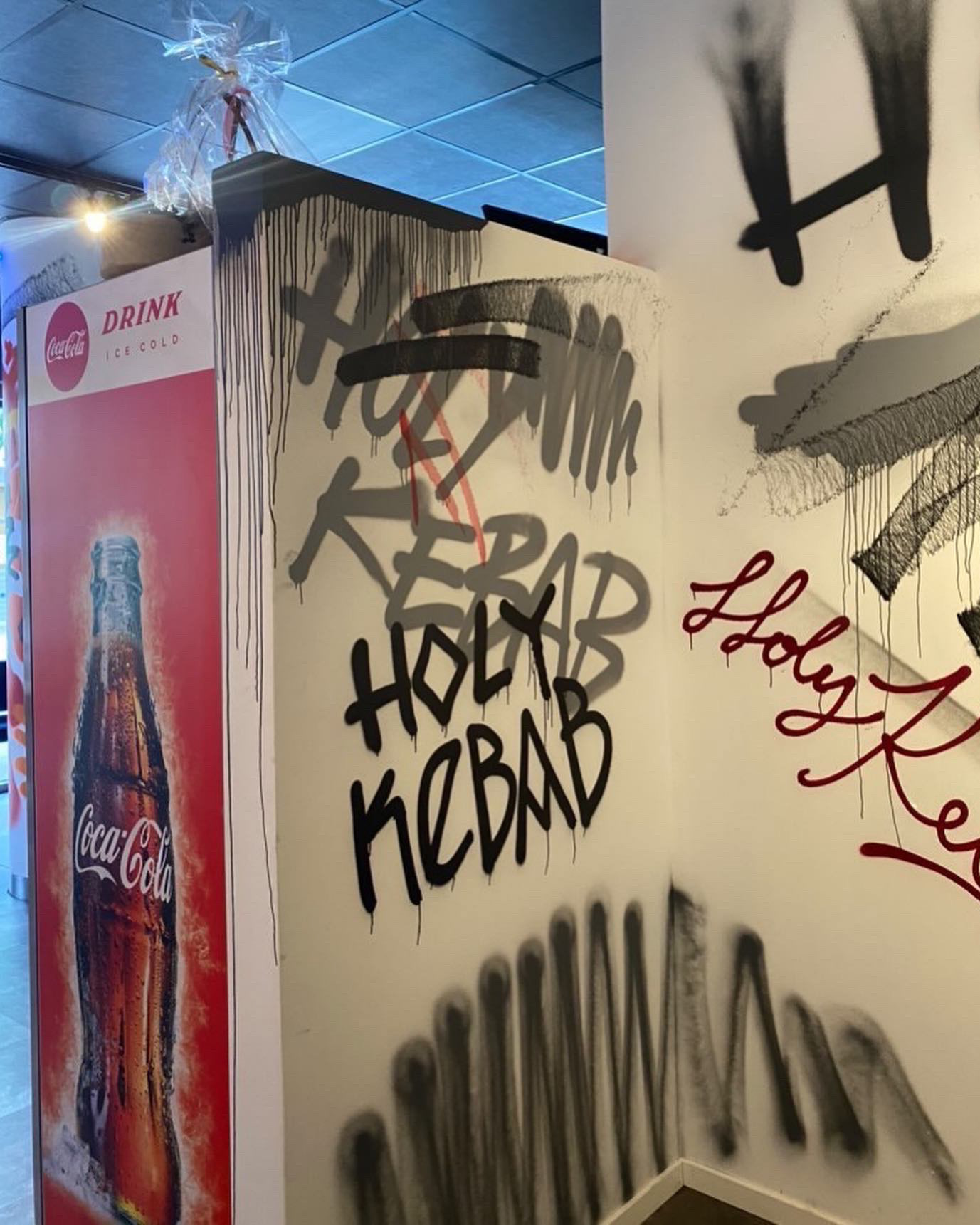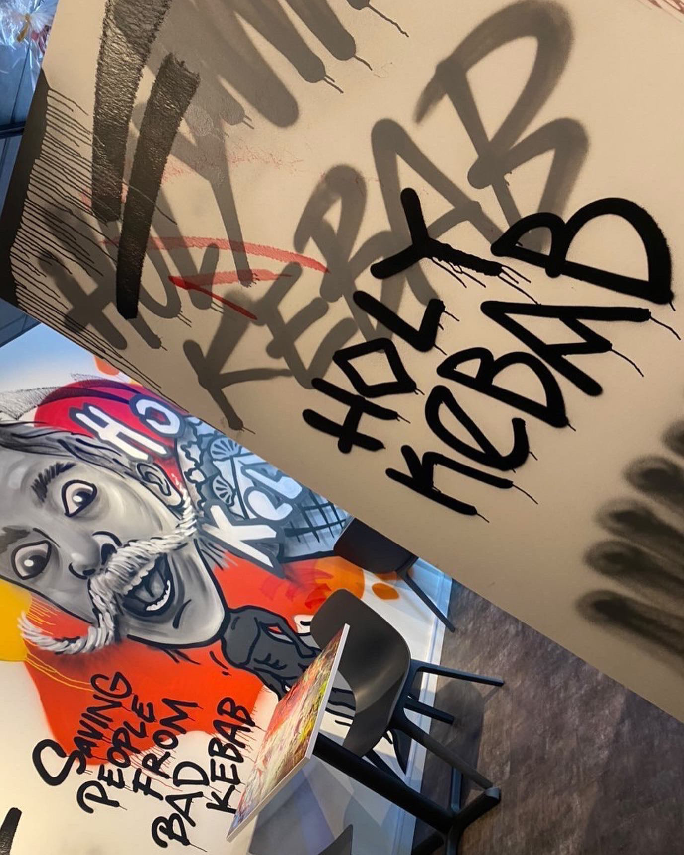 Målning på väggarna i restaurangen Holy Kebab i Skövde.