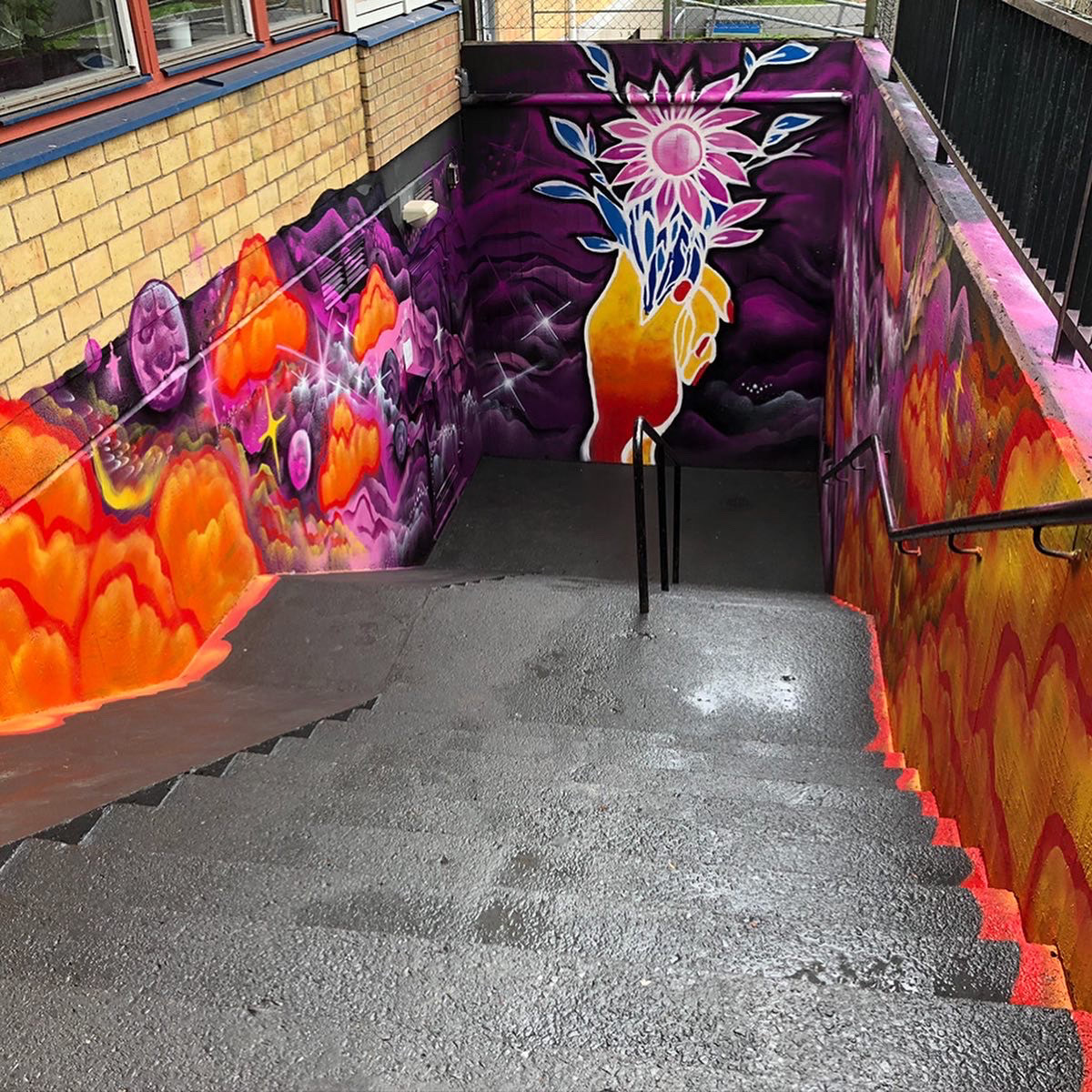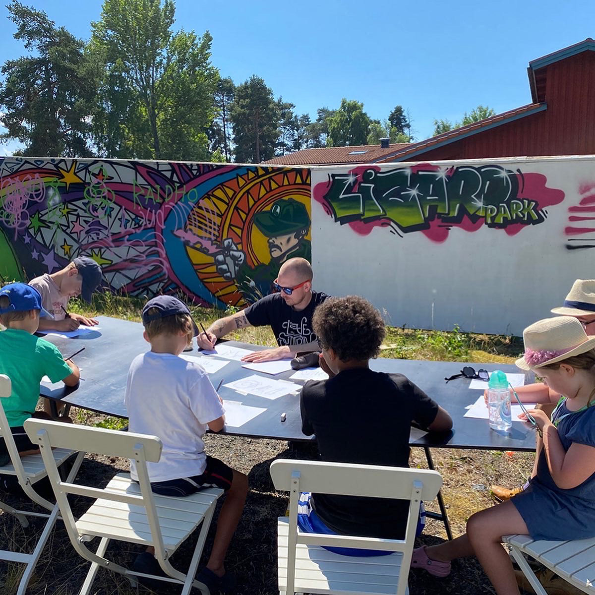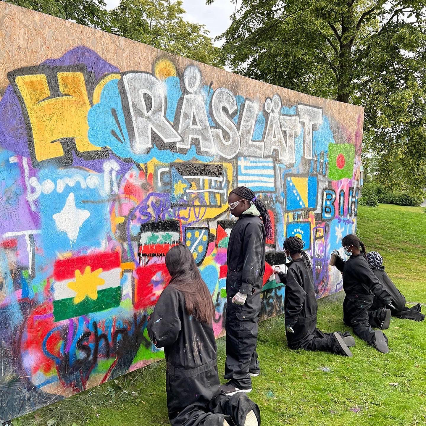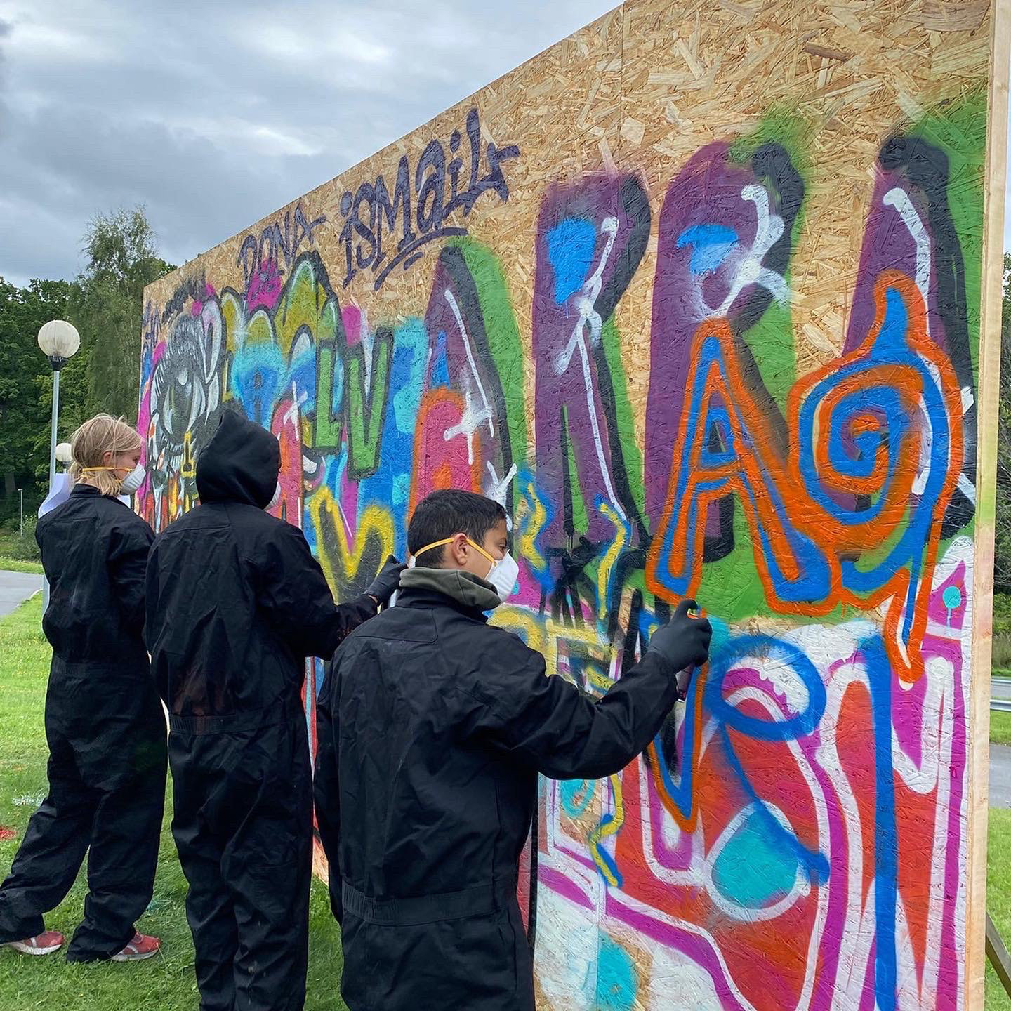Vi inspireras av varandra. Vi lär oss grunderna i graffiti och gatukonst. Vi testar olika tekniker som akvarell, akryl, blyerts, kol, sprayfärg, posca och tusch.