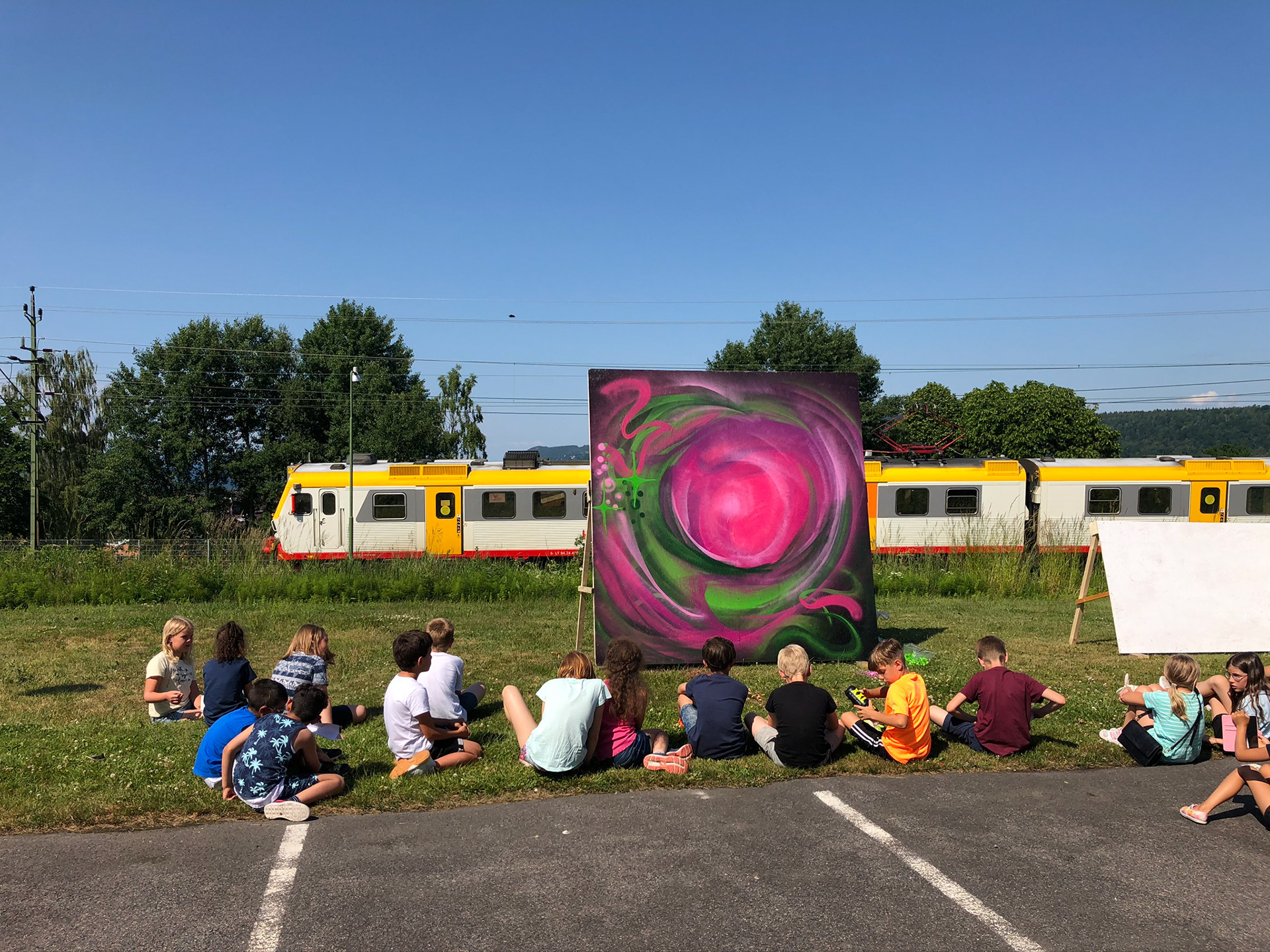 Sommarlovs-aktivitet med ungdomar på Kungsporten i Huskvarna.