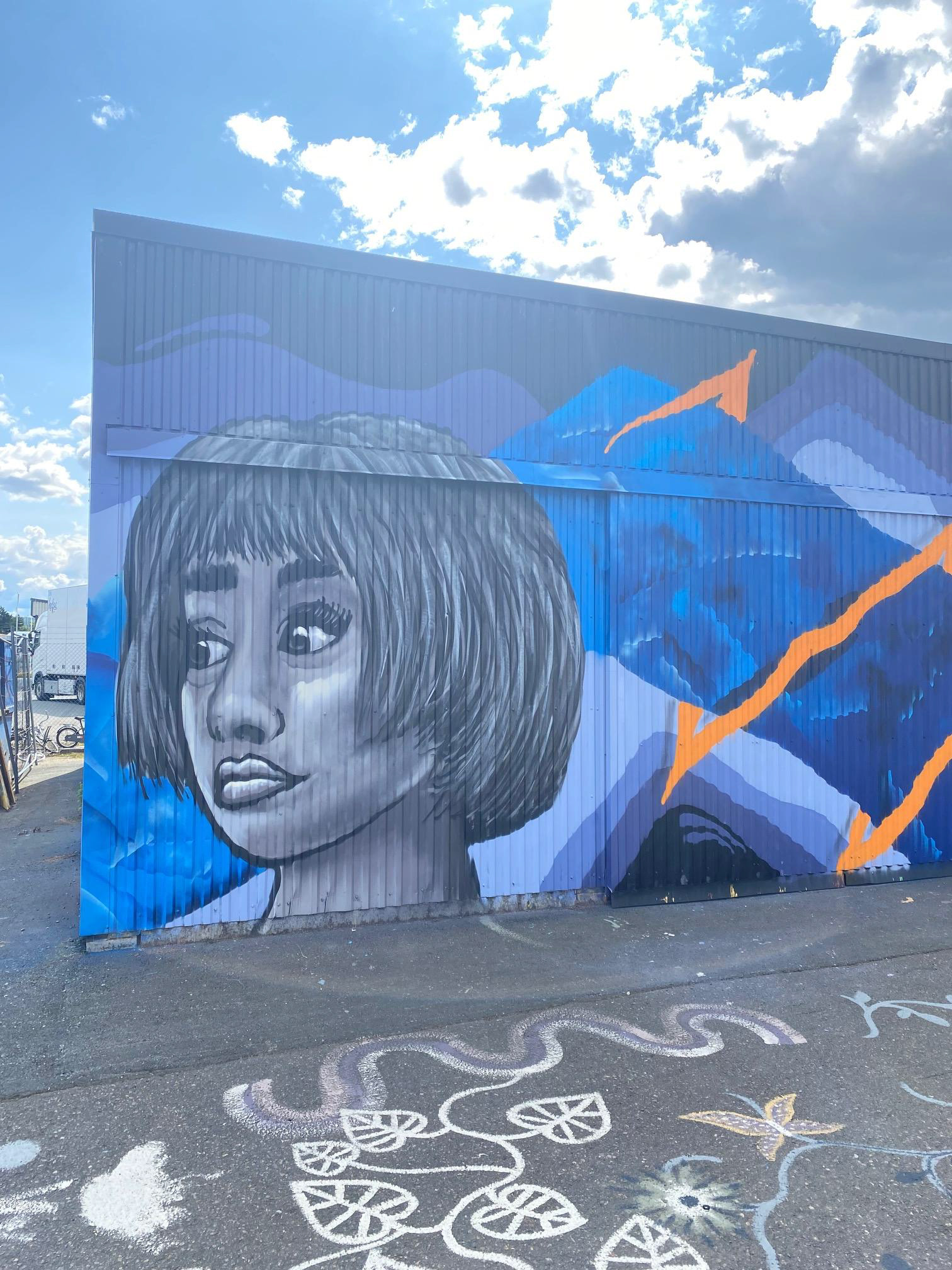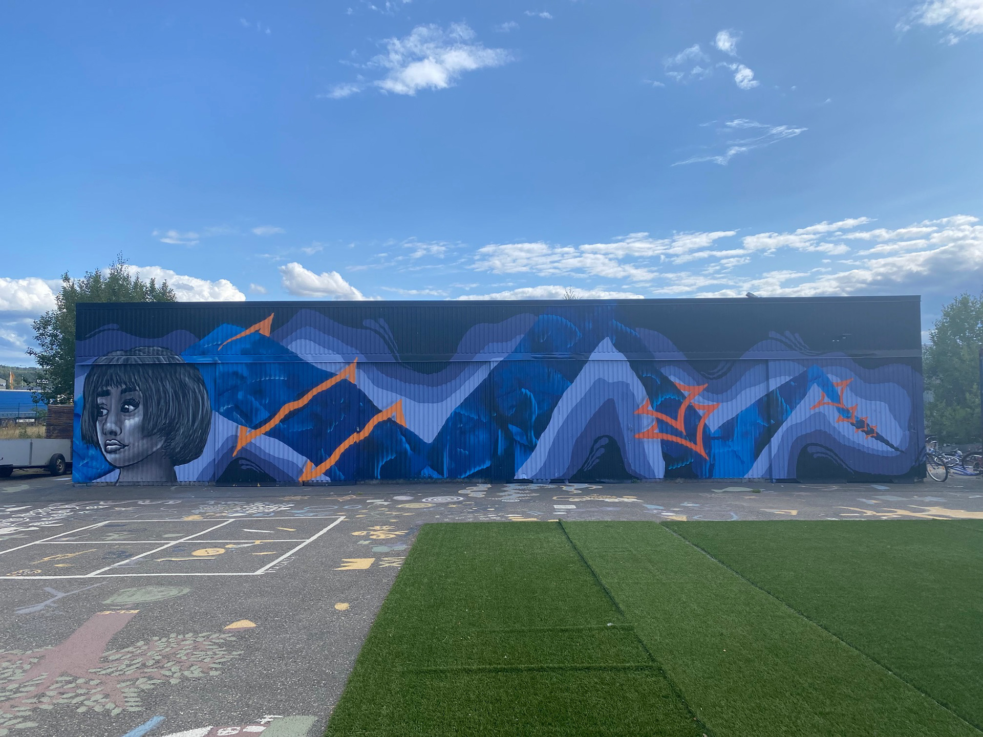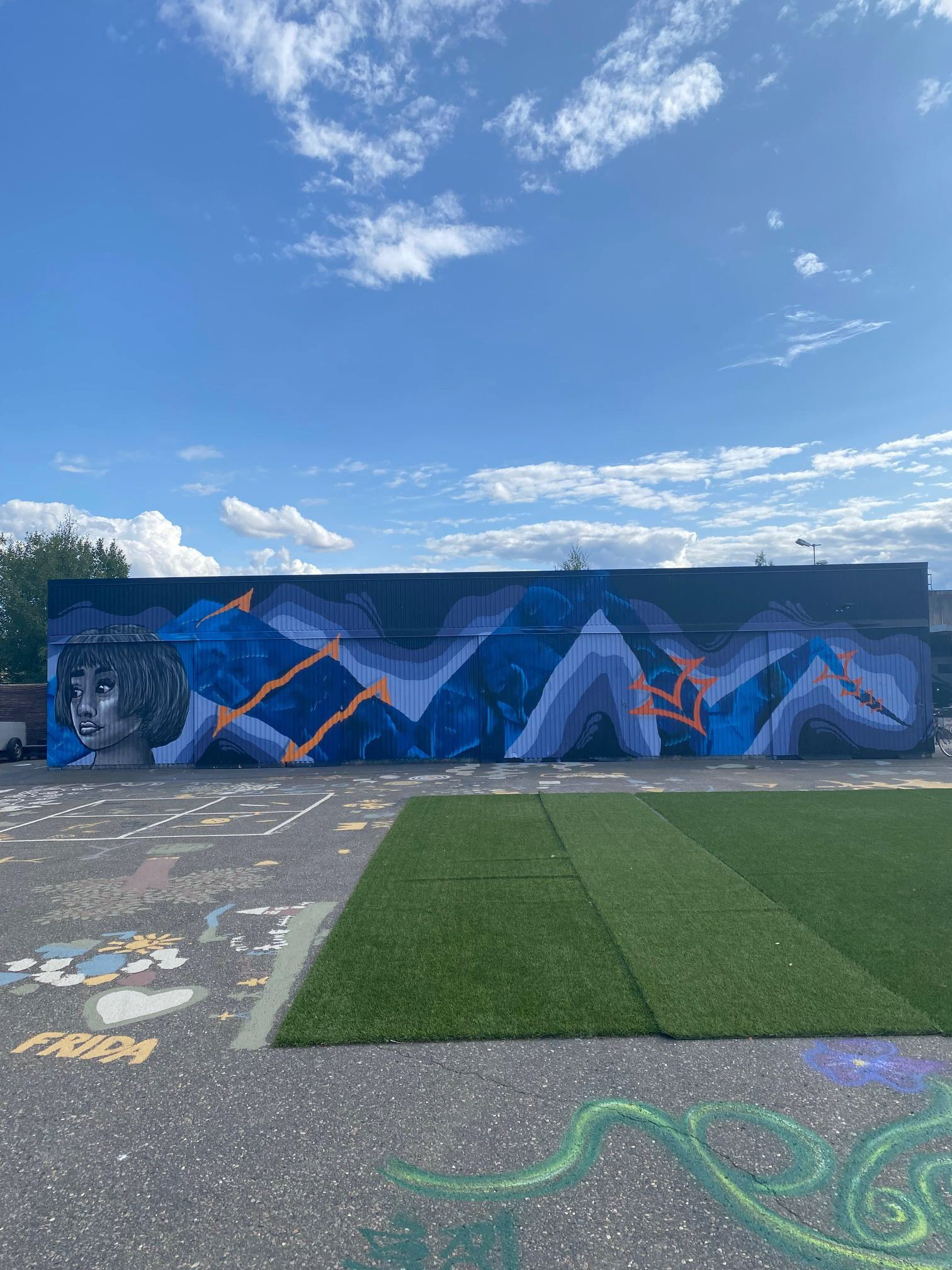 Målning på innergården till kulturhuset Ödlan i Jönköping, vid Munksjön. Målningen är gjord tillsammans med