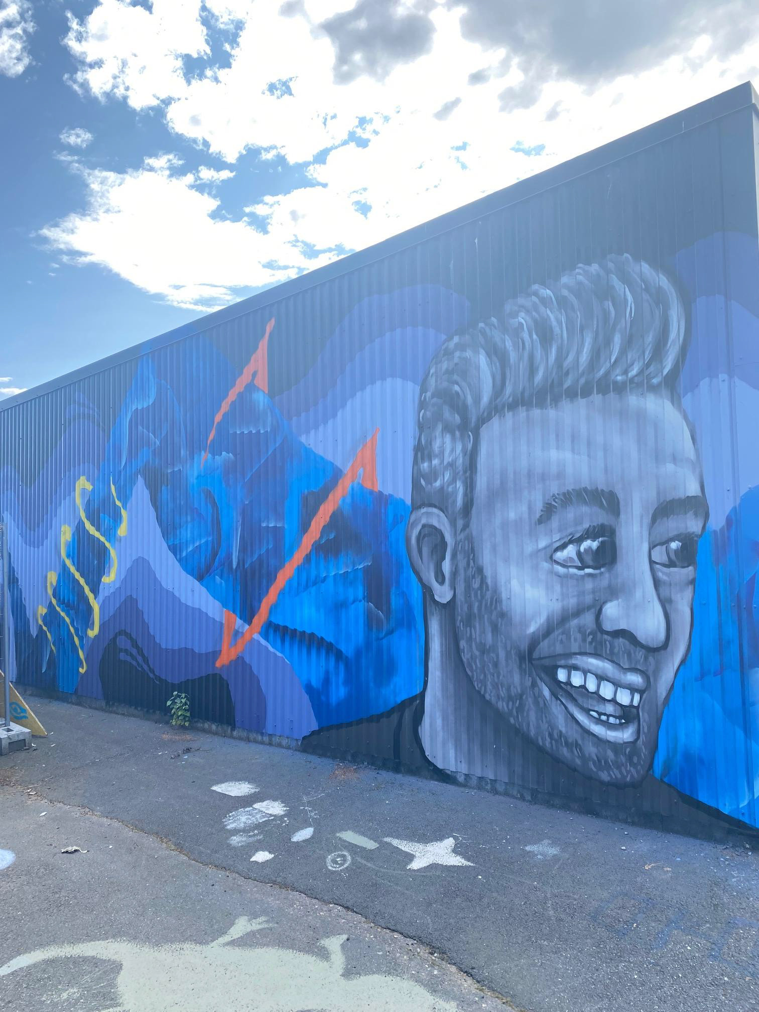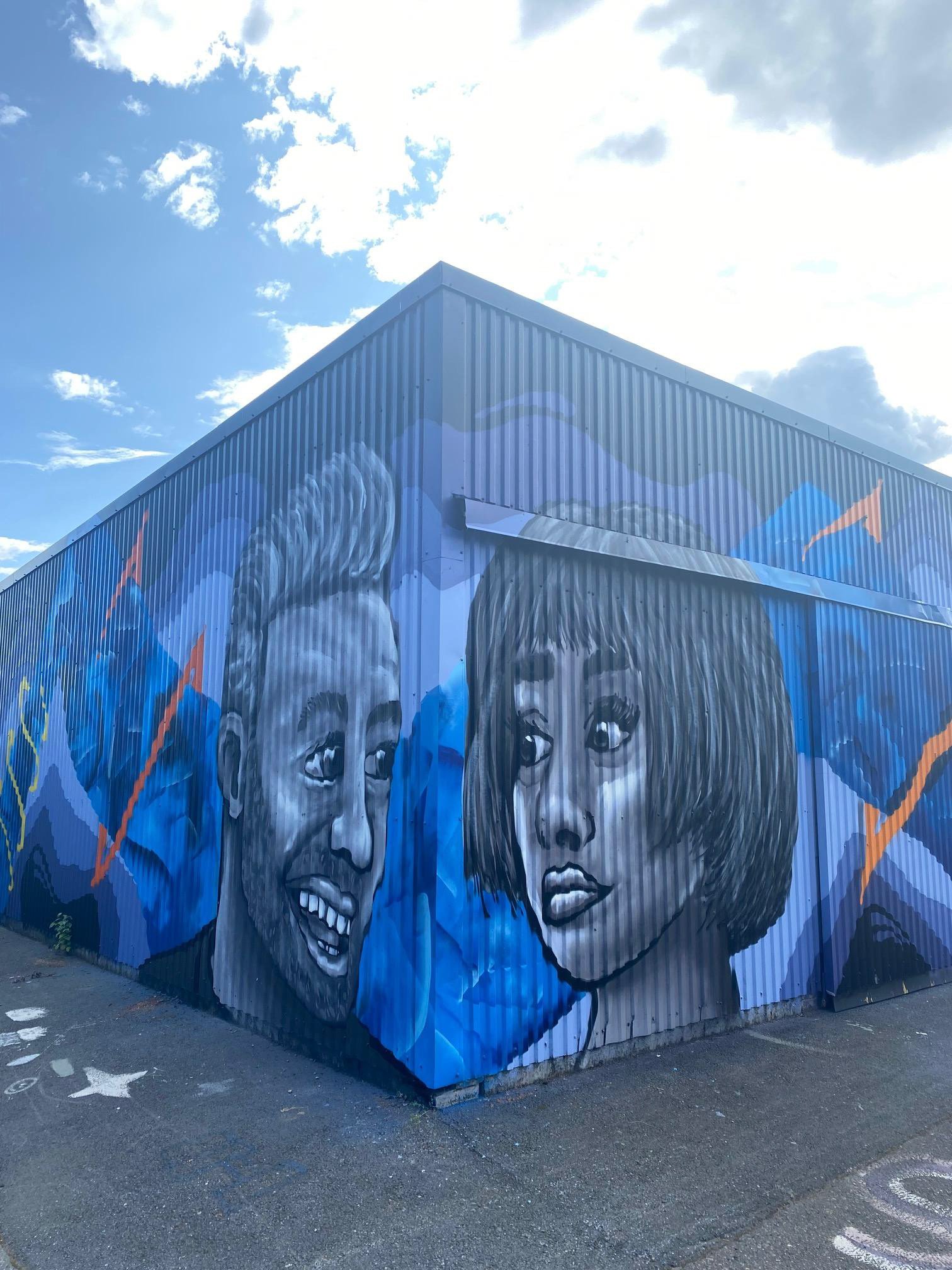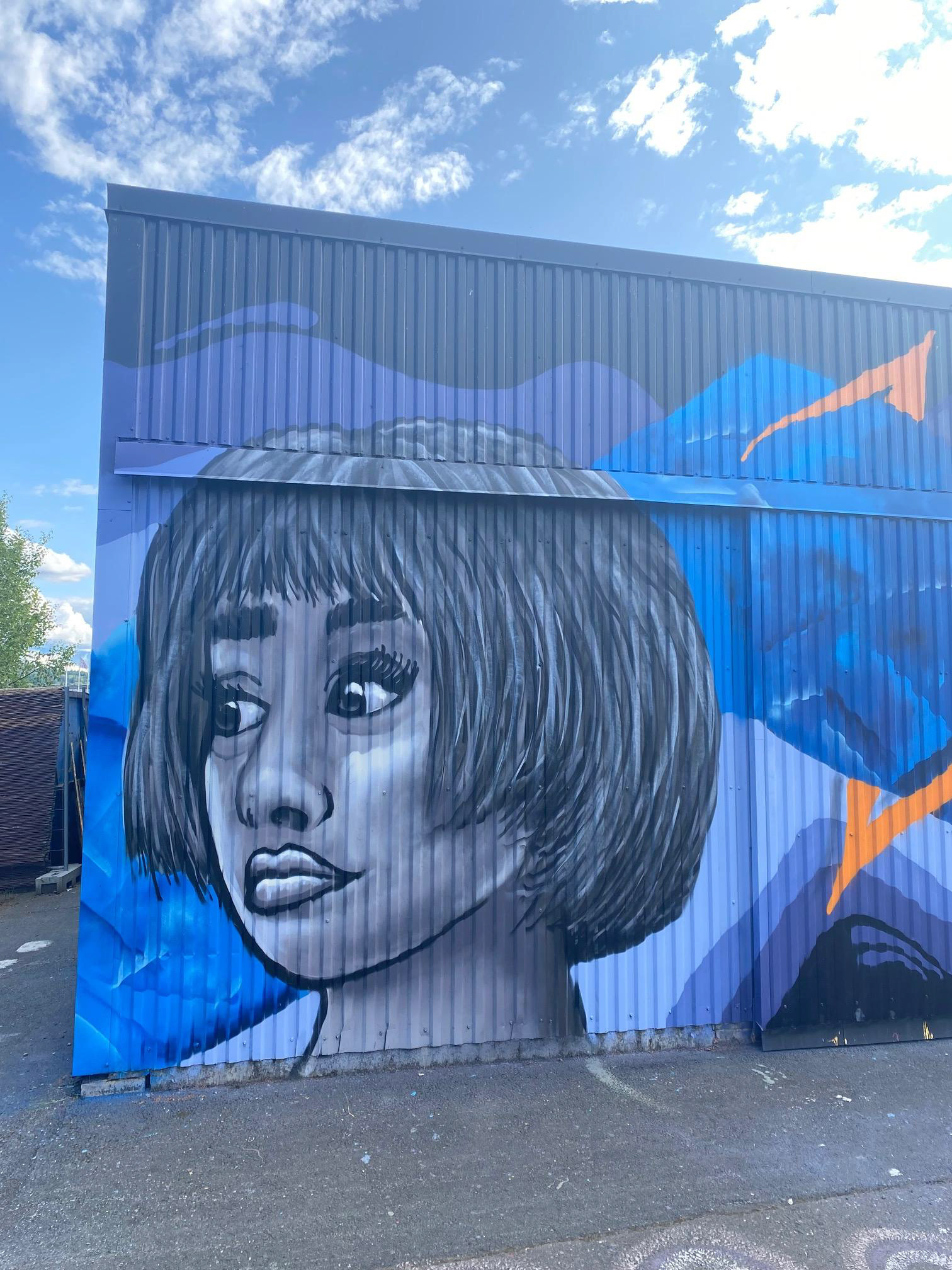 Målning på innergården till kulturhuset Ödlan i Jönköping, vid Munksjön. Målningen är gjord tillsammans med
