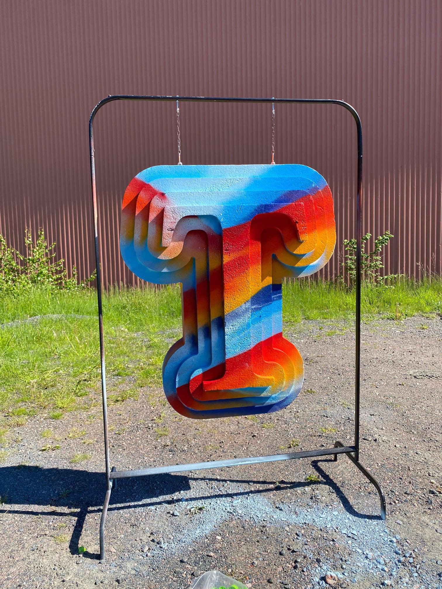 Spraymålat Loggo i Frigolit till Taberg Eyewear.