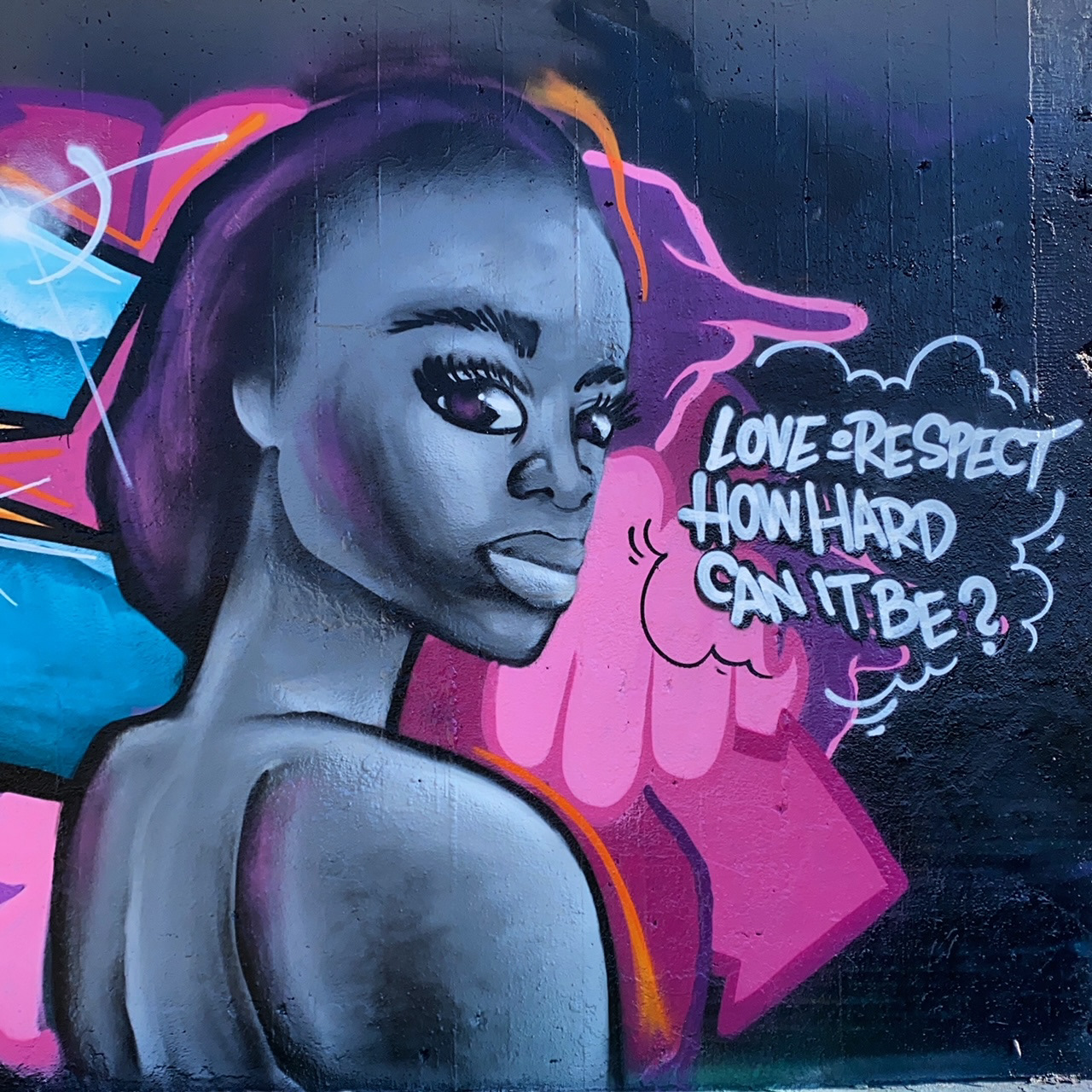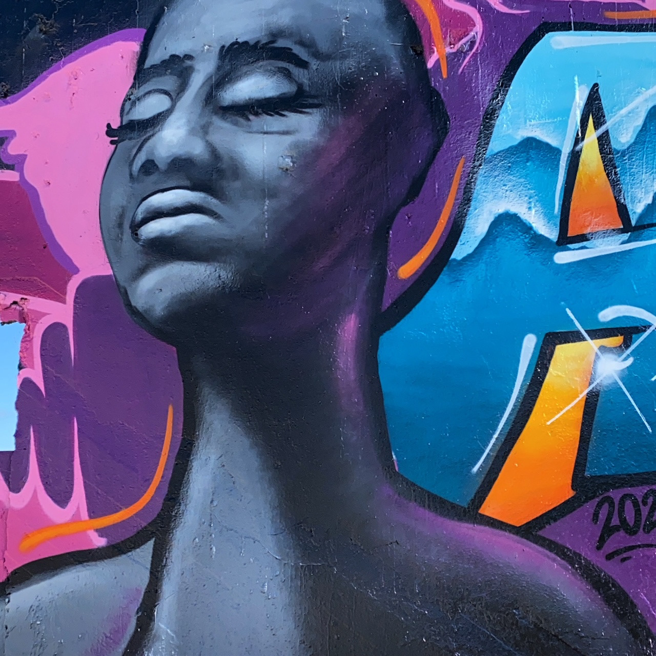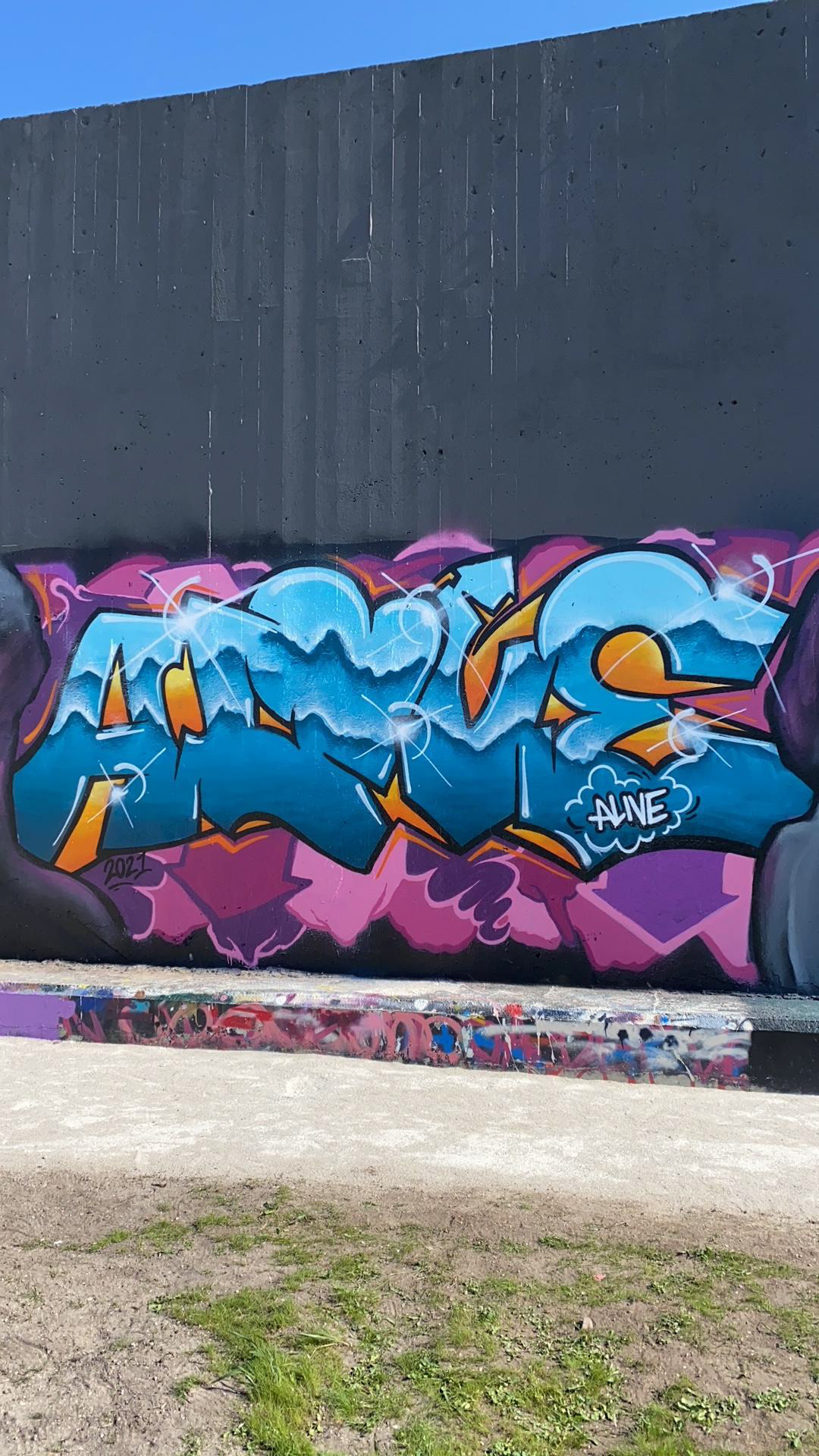 Stor muralmålning på öppna väggen i Visby, Gotland.