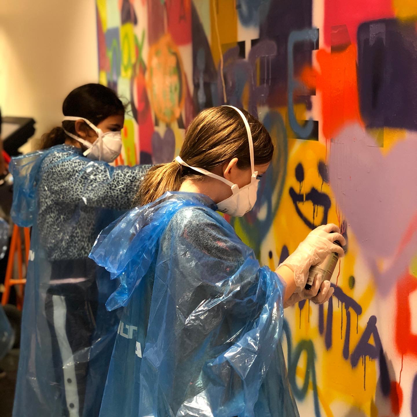 En cool effekt är att gömma en logga bakom alla färger. Vid slutet av ett workshop tar vi bort klistermärket och så poppar ett budskap eller logga fram.